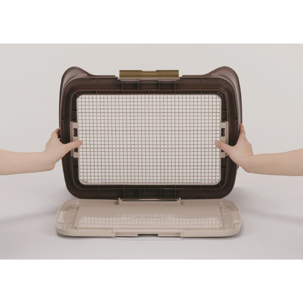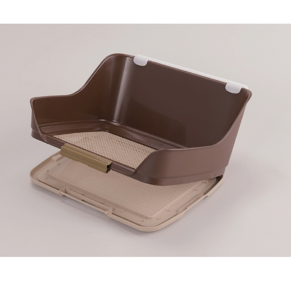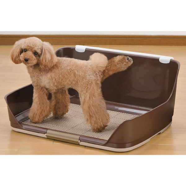 背面部の壁に高さがあるので足を上げるワンちゃんにぴったり!背面部の壁にシーツをセットできるシーツ止めクリップ付き!メッシュカバーでいたずら防止ができシーツへのいたずらが無くなればメッシュを外して使用可能、回転式でシーツの交換も楽々!ワイドサイズ(60×45cm)のペットシーツがぴったり入る犬用トイレです。●サイズ:(Mサイズ)約W665×D540×H290mm●材質:PP樹脂、ABS樹脂