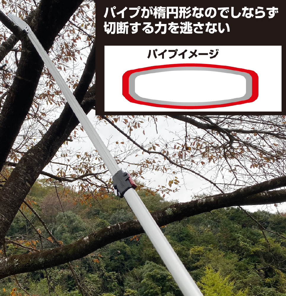 ●簡単操作の伸縮式のこぎり高所の枝をザクザクカット。