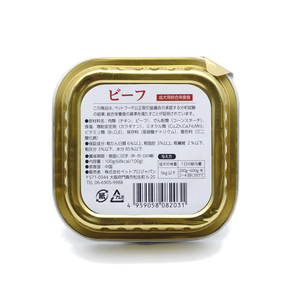 素材の旨みを引き出すようおいしく調理したウエットタイプのドッグフードです。愛犬の大好きなビーフに野菜をプラスしました。