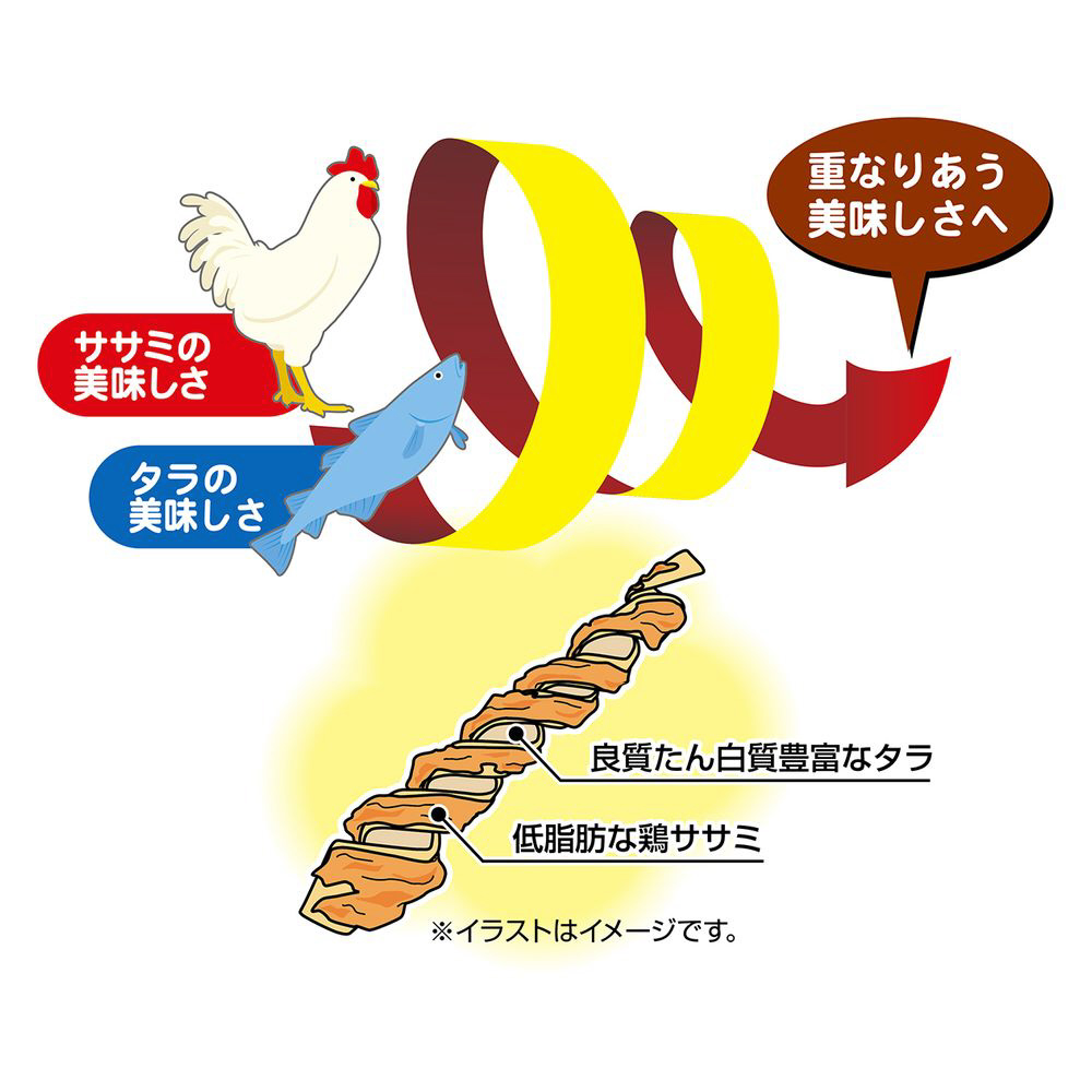 ●ササミとタラのダブルの美味しさが一度に楽しめるロールスナック!