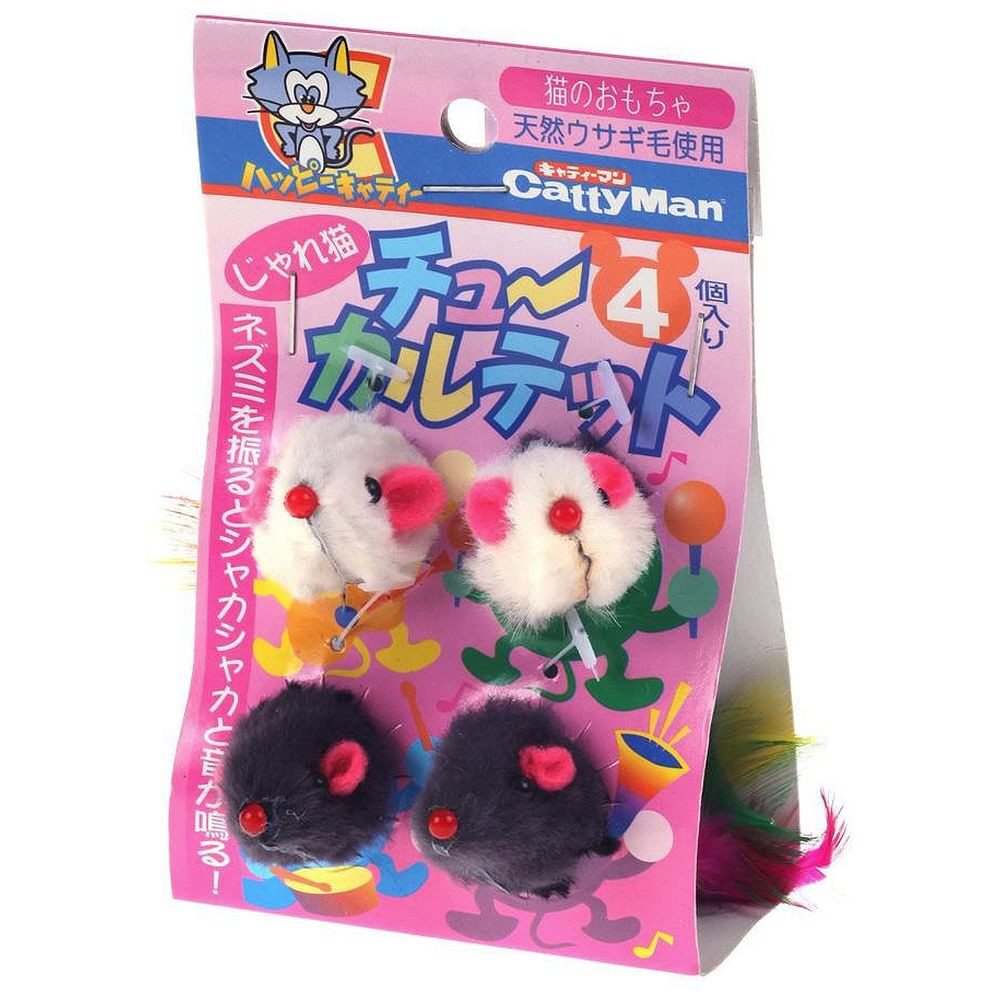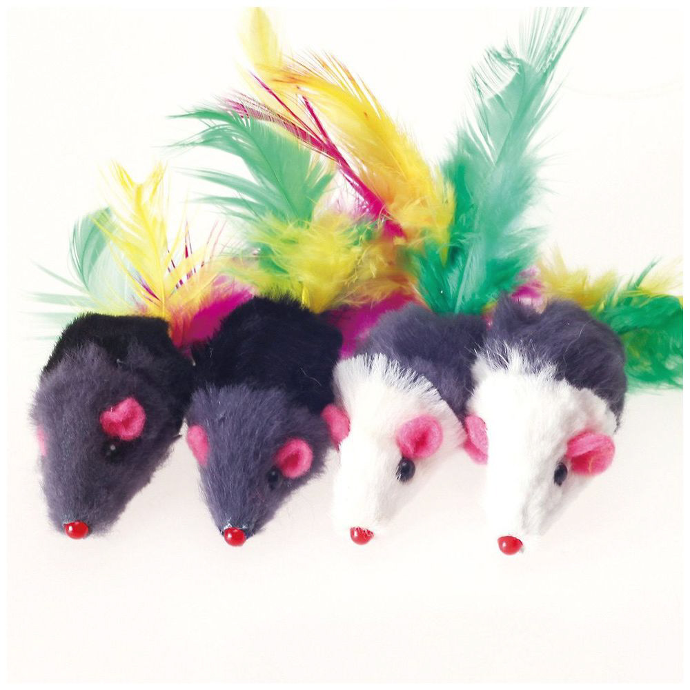 ■カラフルな尾羽つきのネズミが4匹入ったお手頃パックです。