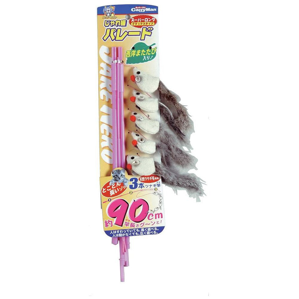 ■くっついているのは、ウサギ毛と綿でつくったネズミ!西洋またたび(キャットニップ)の香りが嬉しい釣り竿タイプのおもちゃです。遊ぶ範囲がグンと拡大する、迫力満点のアイテムです。