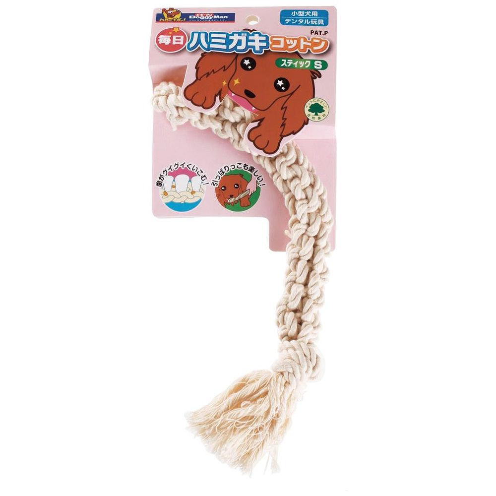 しっかり噛める、コットン100%。くわえやすい、スティック型のおもちゃ。