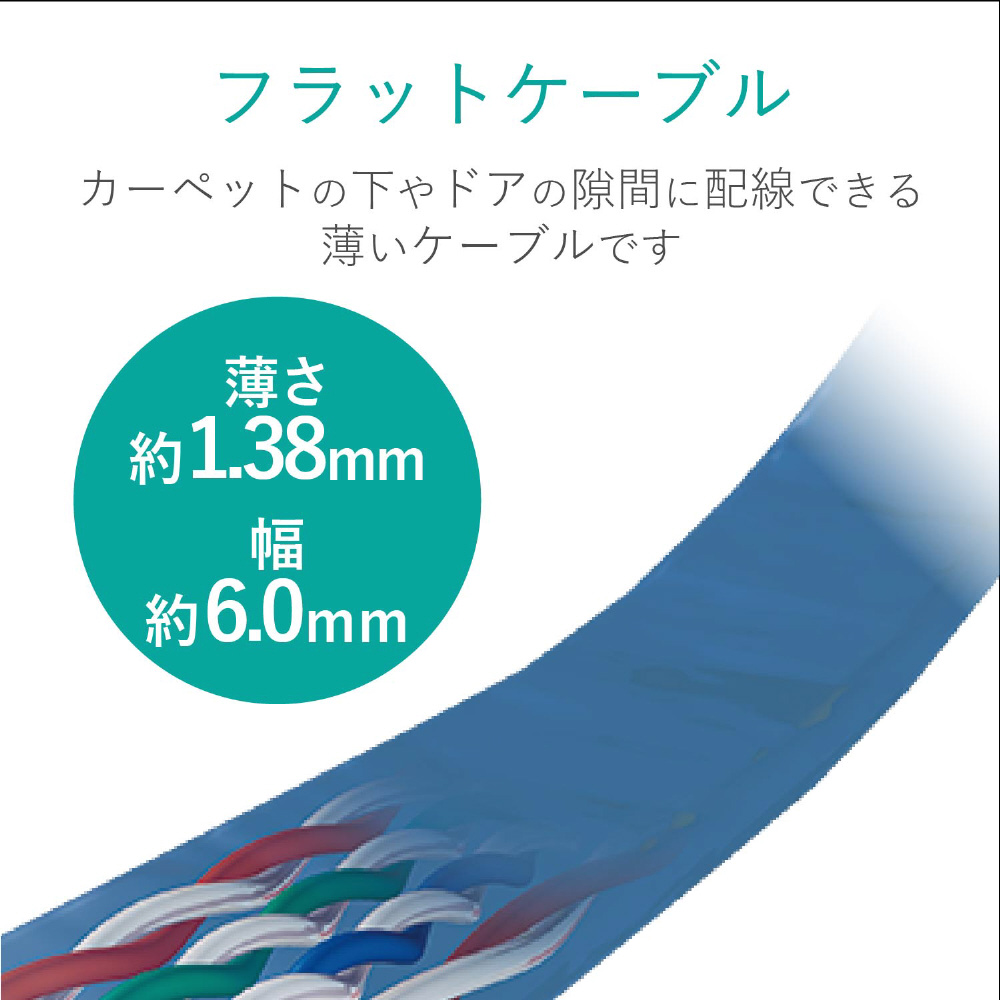 ■カラー:ブルー ■伝送速度:1Gbps ■インターフェイス:RJ-45コネクター ■環境配慮事項:EU RoHS指令準拠 ■規格:Cat6準拠(1000BASE-TX/1000BASE-T/100BASE-TX/10BASE-Tに準拠) ■伝送帯域:250MHz ■ケーブル長:20.0m ■結線方式:ストレート結線 ■ヨリ対芯線(ツイストペアケーブル):○ ■外部シース(被膜)材質:PVC ■導体構成:ヨリ線 ■コネクタ有無:両端コネクター付 ■スリムコネクタ:○ ■爪折れ防止カバー付コネクタ:○ ■パッケージ形態:アルミ箔袋+ステッカー ■ケーブル太さ:1.38mm ■芯数:8芯 ■モールド加工コネクタ:○