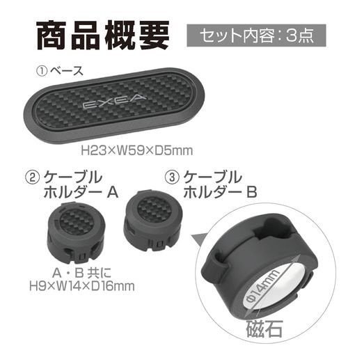 車内用品 EXEA(エクセア) マグネットケーブルホルダー カラー:カーボン調 EC-204
