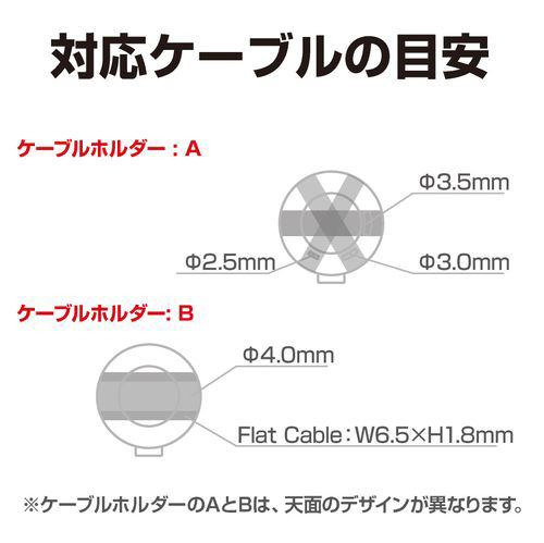 ●収納サイズ:ケーブルの太さ【A:Φ2.5、Φ3.0、Φ3.5】