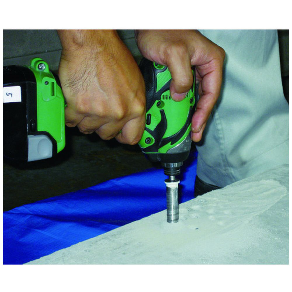 超硬ドリルに比べて、欠けが少なくきれいに穴あけができます。
