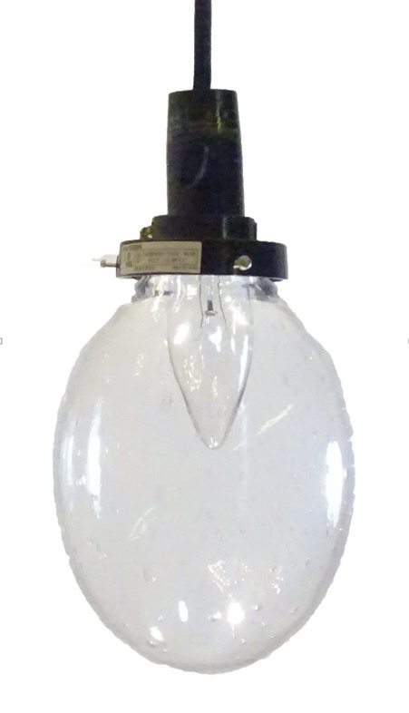 ガラス製のシンプルなタマゴ型カバーに、泡の様な気泡が入った、おしゃれペンダントライト。