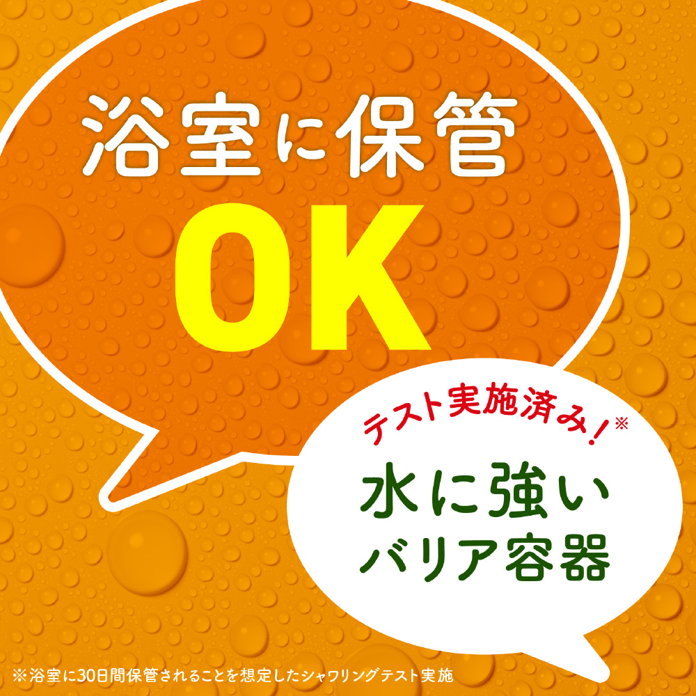 ●水に強いバリア容器: 浴室に30日間保管されることを想定したシャワリングテスト実施