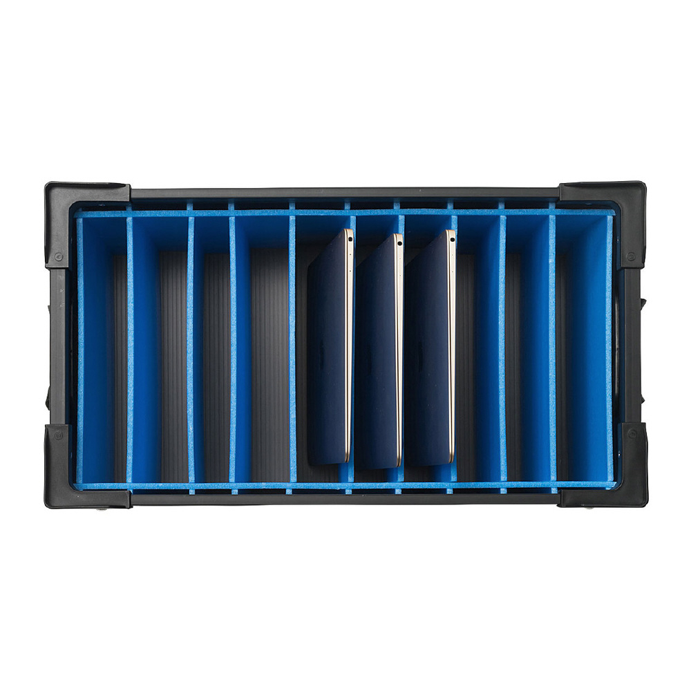 プラダン製で軽量な収納ケース。タブレット、ノートパソコンが10台収納できるスリット入り。