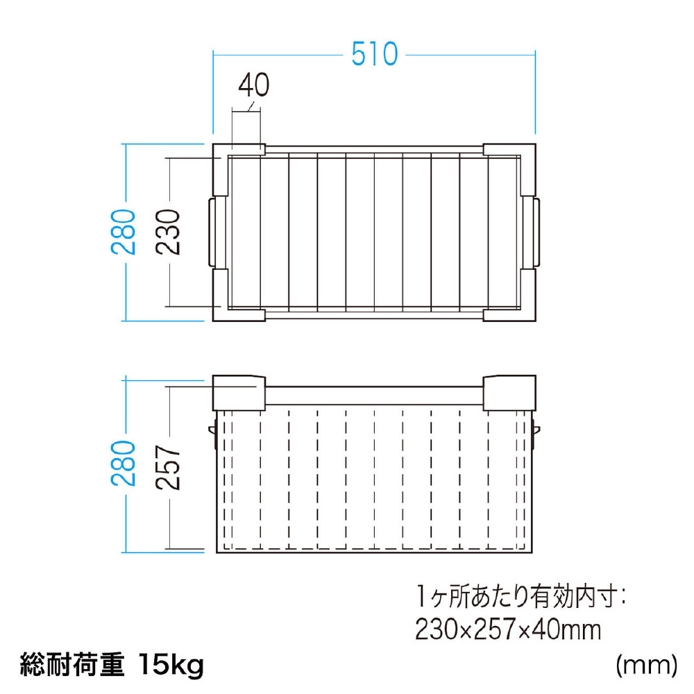 有効内寸/230×257×40mm(1ヶ所あたり)