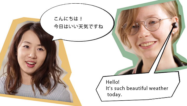 例えば、日本人のあなたが英語を話す海外のお客様と会話する時、あなたはいつもの日本語を話すだけで相手には英語で伝わり、相手の話す英語は日本語に翻訳されて聞こえてきます。