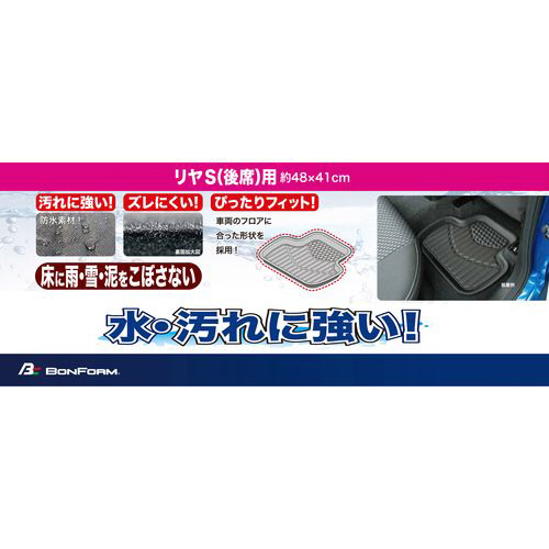 6447-06BK カーマット 3Dタフガード 軽自動車用 リア用1枚入り ズレ防止加工 丸洗いOK 雨・雪・泥汚れに強い 防水性・耐久性に優れたTPE素材 サイズ:48×41cm カラー:ブラック