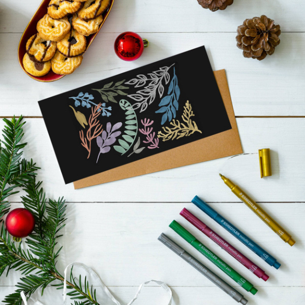 白い紙はもちろん、黒い紙に描くとより一層キレイに映える発色のメタリックマーカーです。線幅は1〜2mm、インクフローがしっかりしているのでスラスラと軽快な書き心地です。写真にも色紙にも、ノートのデコレーションンにも使えます。何より、イラストでメタリックカラーが必要な方にはうってつけの商品です。         【サイズ】150mm×14mm×10mm
