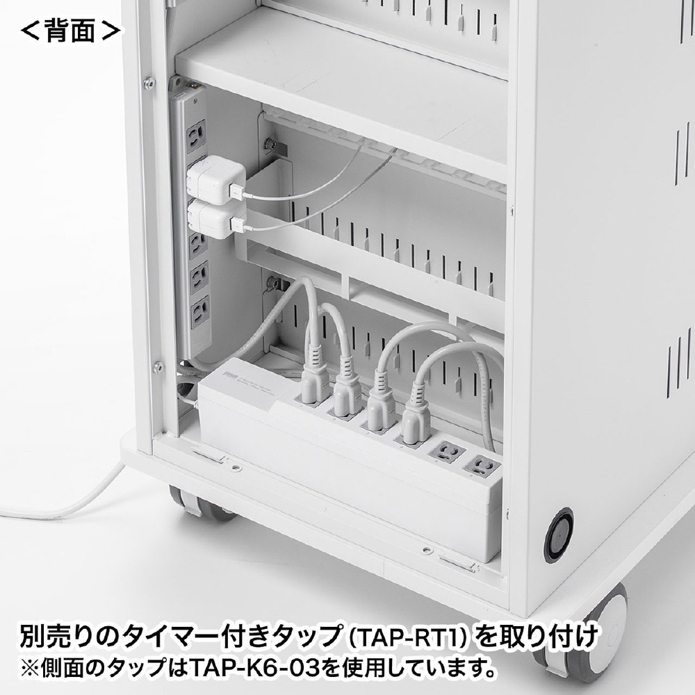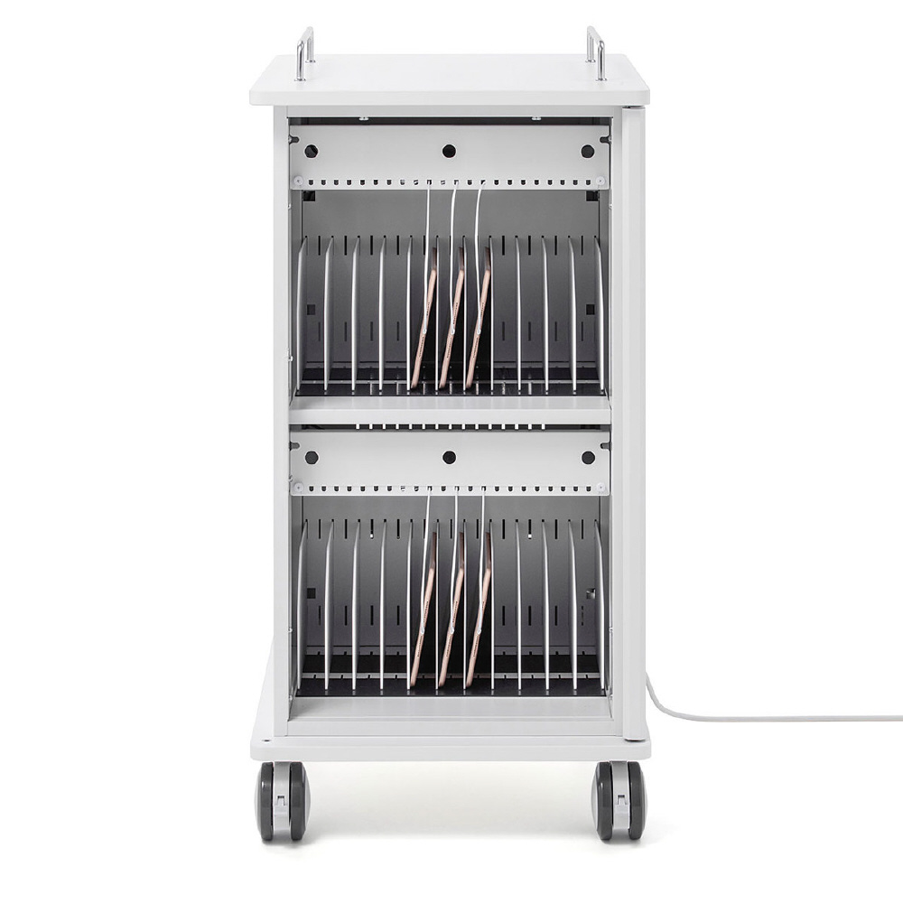 学校導入に配慮した、省スペースにタブレットを22台収納できるキャビネット。