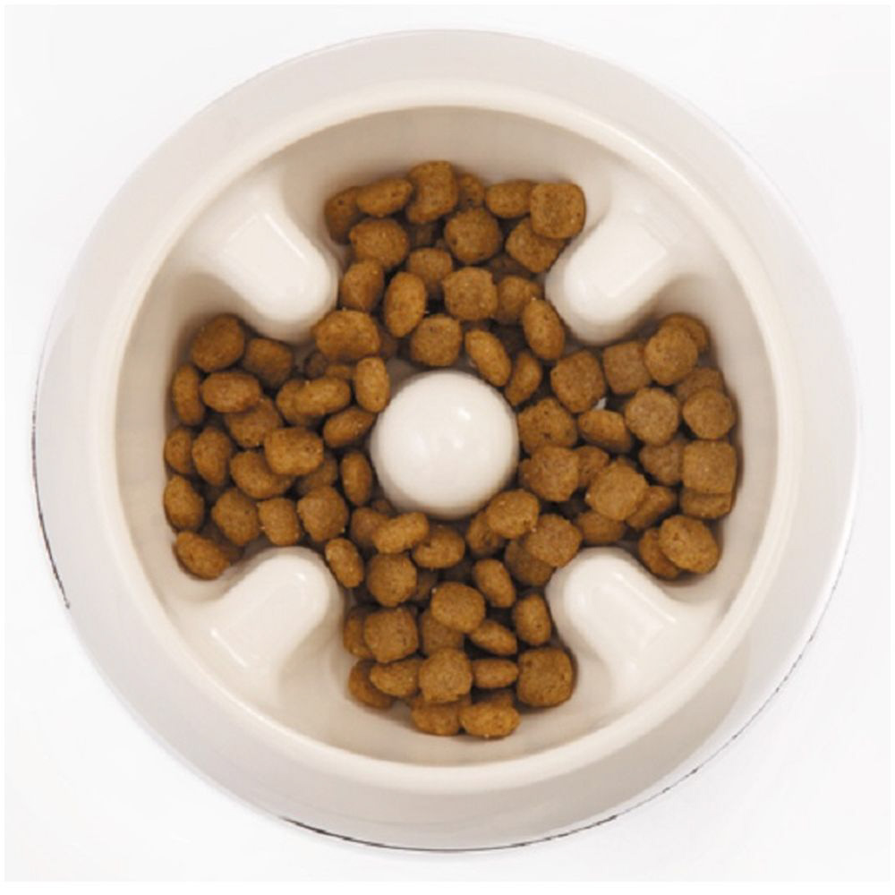 側面と中央に突起をつけペットが食事をするときにゆっくりと食べれるよう設計されてます。