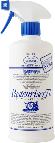 ●パストリーゼ77は、純水使用で、酒精77度の除菌スプレーです。