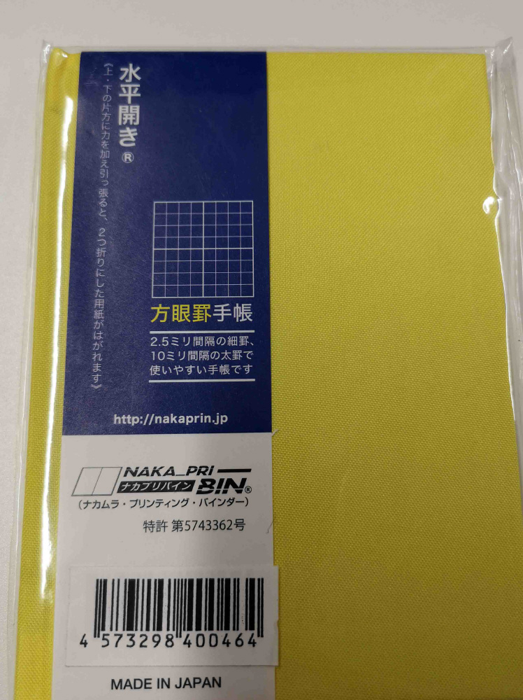 水平開き ハードカバー手帳 方眼罫 パスポートサイズ 黄 40046
