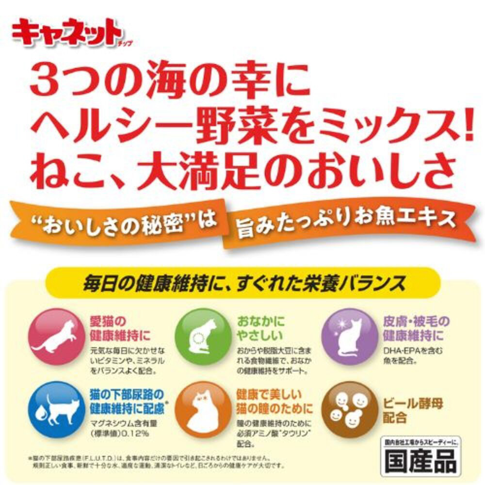 猫の大好きなお魚ベースをベースにエビ、こんぶ、野菜ミックス。猫の健康維持に必要な各種栄養素をバランス良く配合。サクサクした食感、猫の食べやすいサイズに仕上げました。