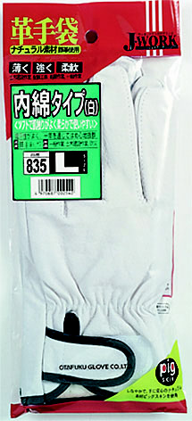 軍手 内綿アテ皮付 白 JW835-M [Mサイズ /滑り止めなし]