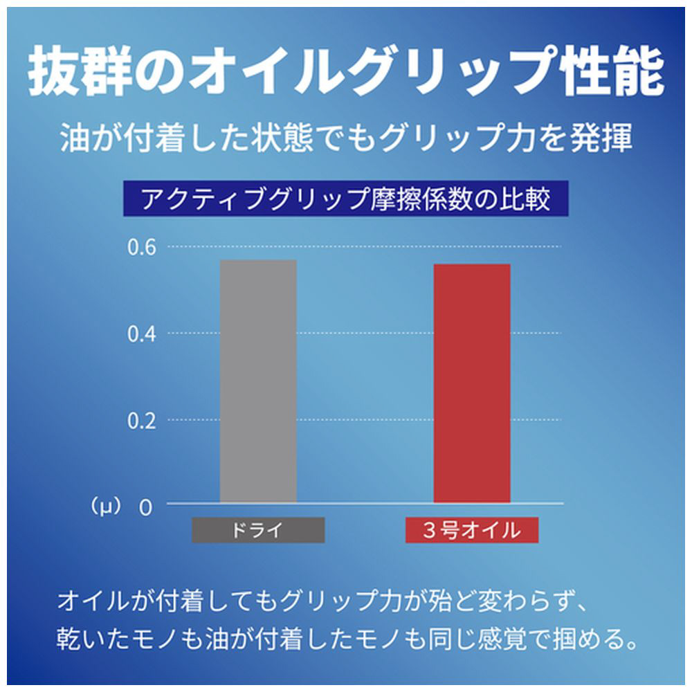 油をともなう作業でもグリップ性に優れています。