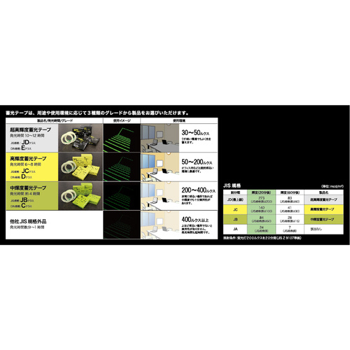 ■最上級のJIS規格(JD級)、および最上級のDIN規格(E級)をはるかに上回る発光力を有します。