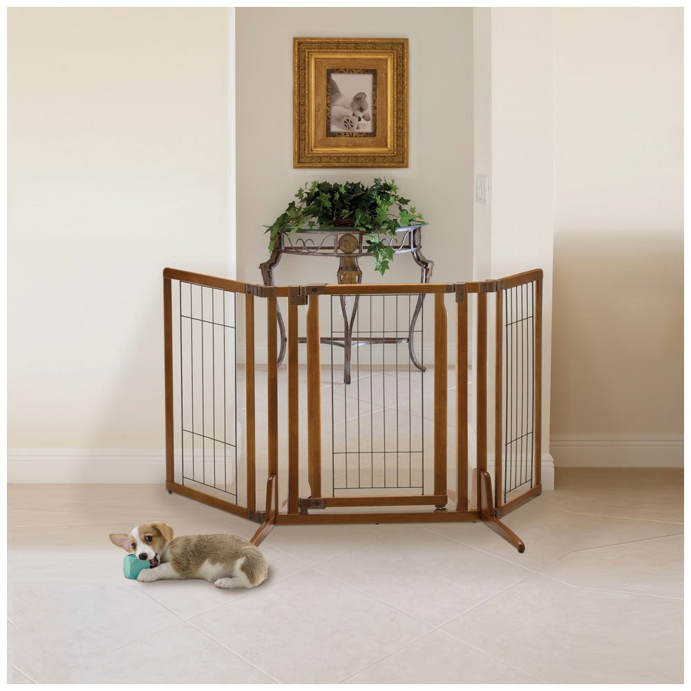 ドア付き、幅調節可能なハイタイプの犬用ゲート(自立タイプ)