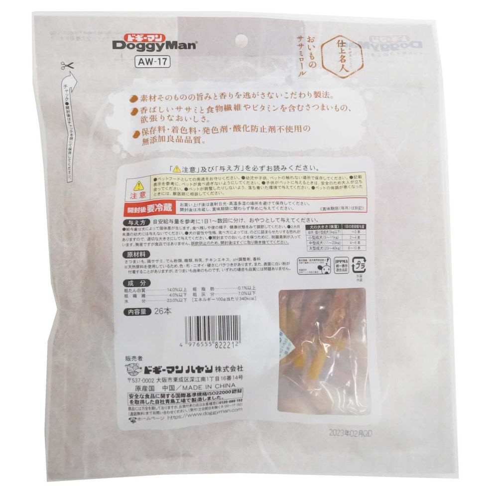 仕上名人 おいものササミロール 26本(13本×2袋) [ペットフード]