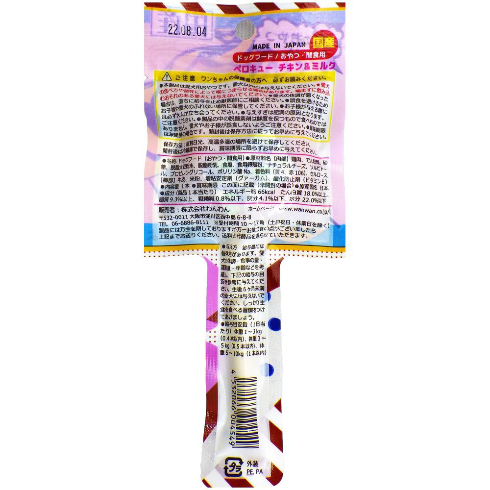 ・棒の部分は牛皮ガムで全部食べられます。頭の肉部分が硬すぎないドッグチョップスの進化版です。ベースはチキン+粒ミルク。