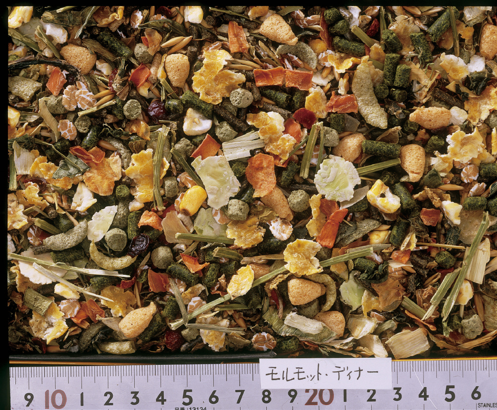 ビタミンCをはじめとした各種ビタミンを含んだ乾燥野菜ミックスに食物繊維が豊富な2種類の牧草ペレットを配合しました。ペットの成長や健康促進に必要な栄養を自然に与えることができます。