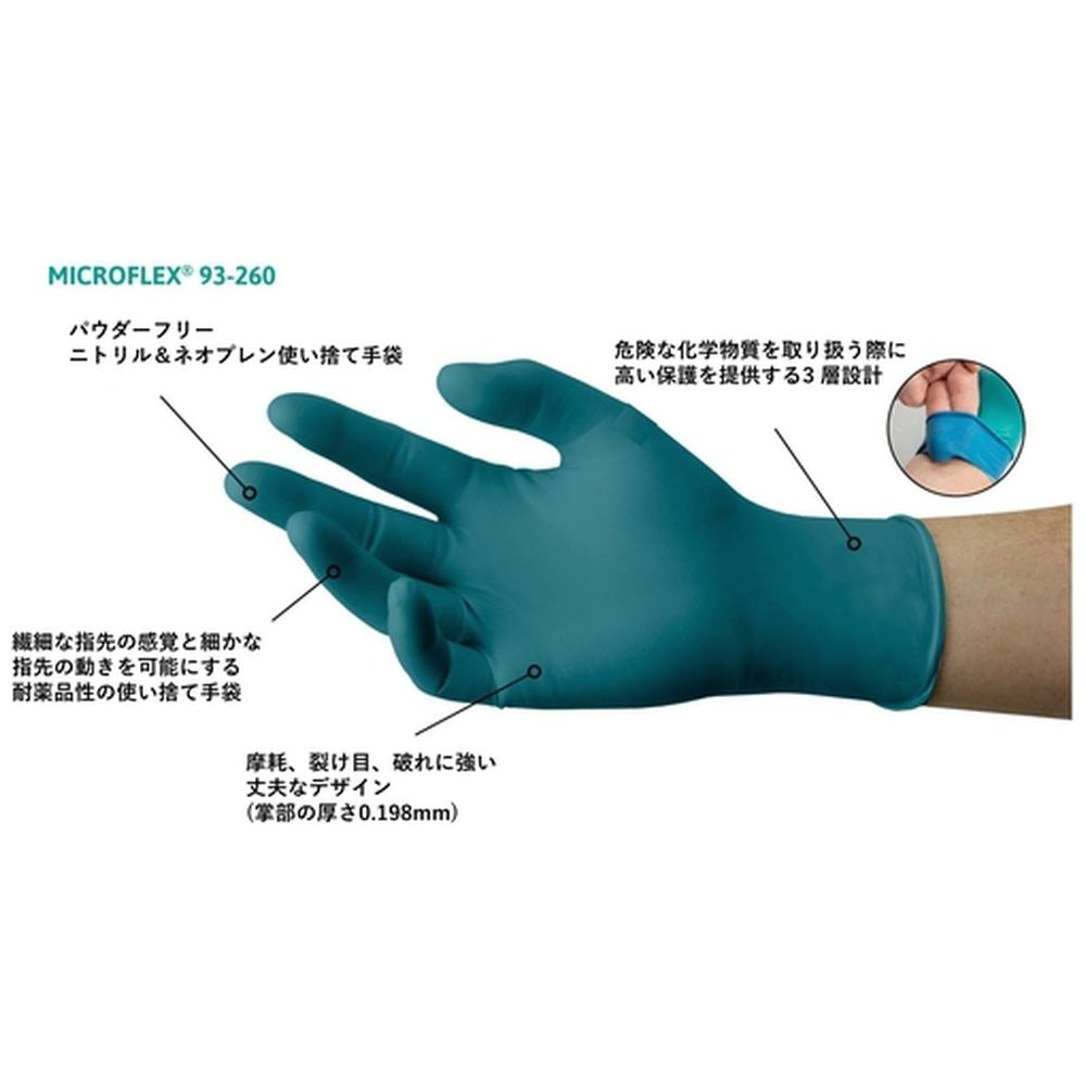 Microflex 93-260 ネオプレンゴム使い捨て手袋 50枚入 XSサイズ グリーン 93-260-6