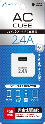 2.4A スマホ用USB充電コンセントアダプタ キューブ ホワイト AKJSD24AWH [1ポート]