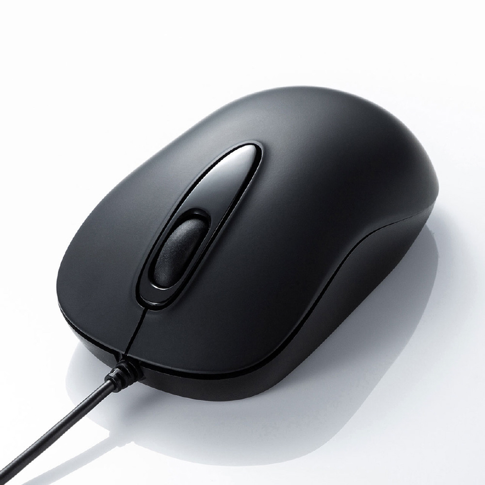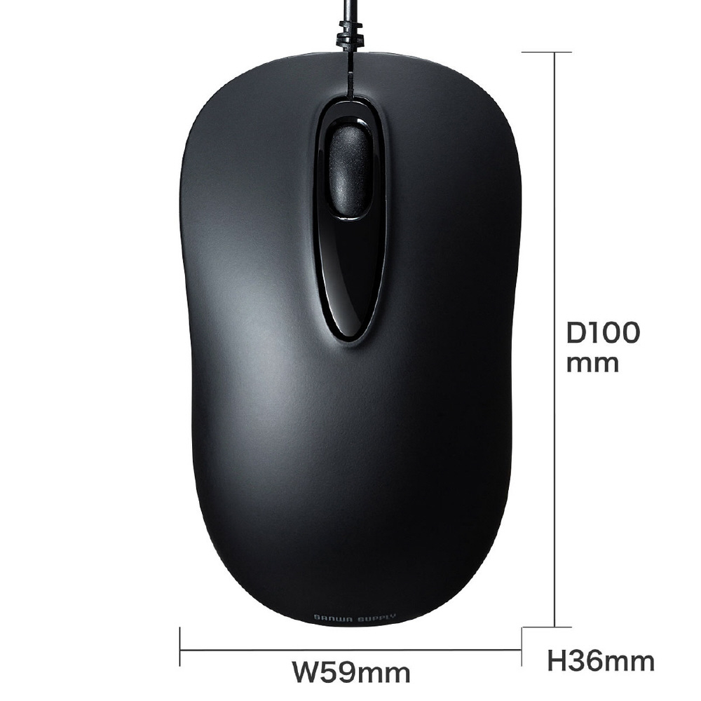 ■対称形で使いやすい、シンプルな有線マウスです。