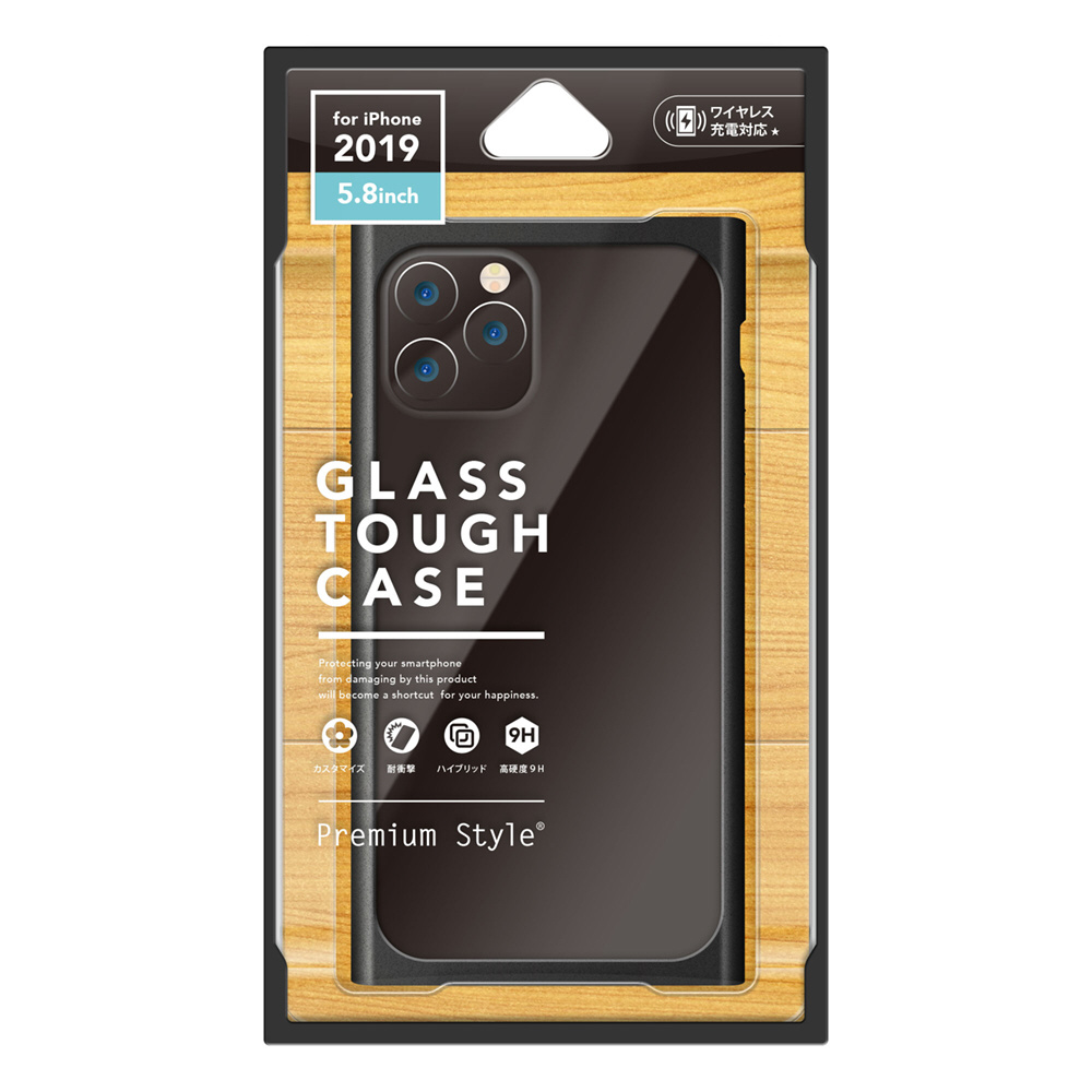iPhone 11 Pro 5.8インチ用 クリアガラスタフケース スクエア型 ブラック