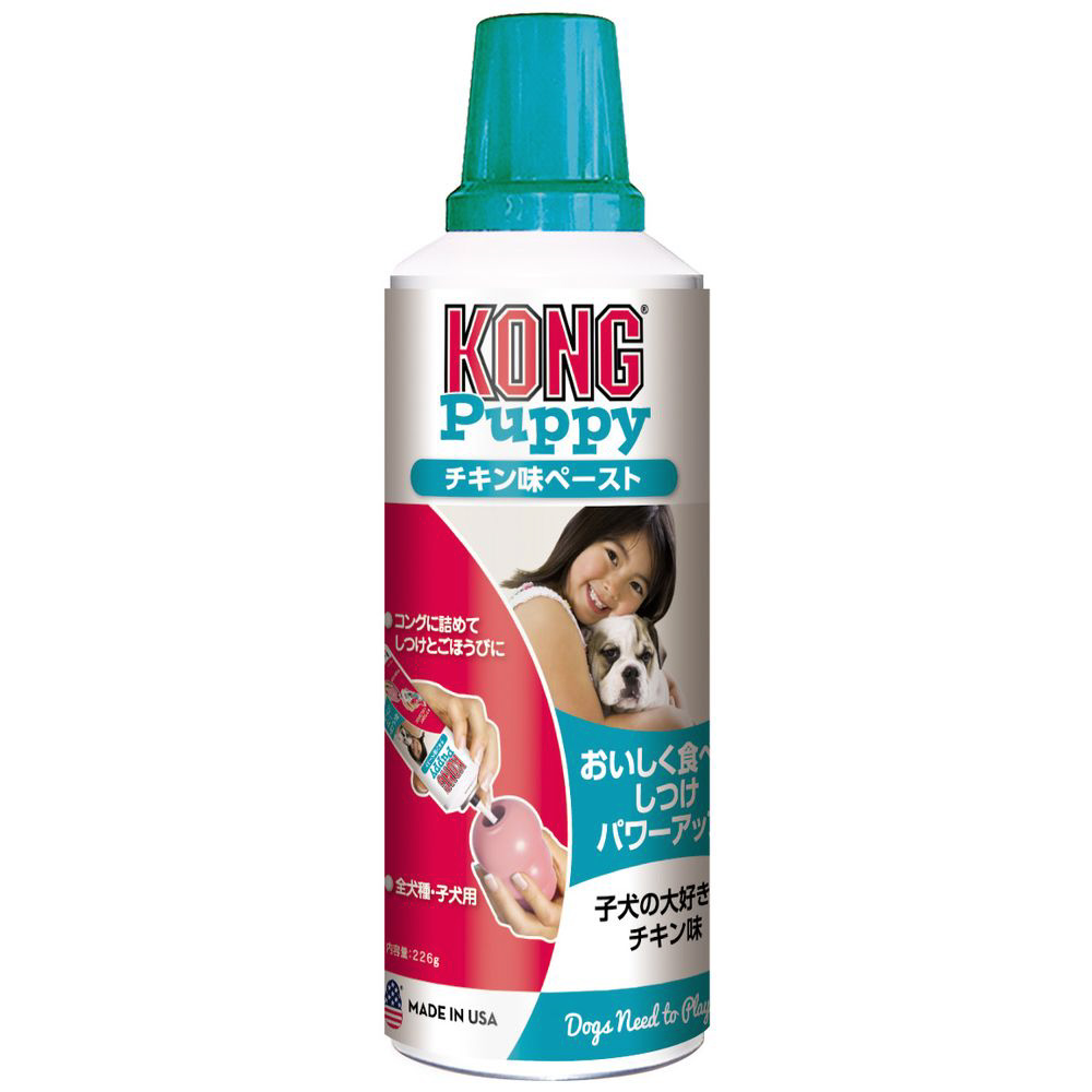 天然ゴム製の犬用知育玩具「コング」専用ペースト。全犬種・子犬にご使用いただけます。エアゾールタイプなので使いやすく、コングに詰めてしつけやごほうびにご使用いただけます。その他、ドライフードにかけたり、夏の時期はコングに詰めて冷やして「アイスコング」としてワンちゃんに。