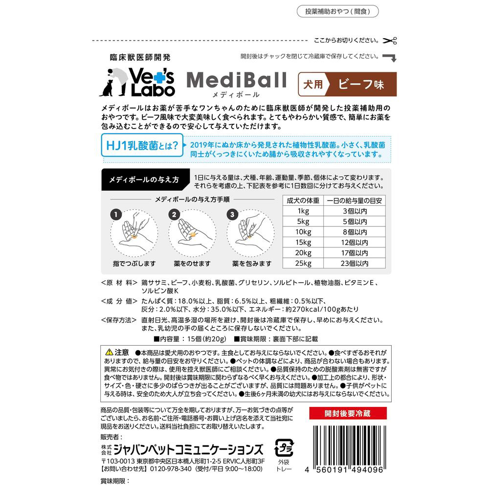 メディボール犬用ビーフ味15個入り