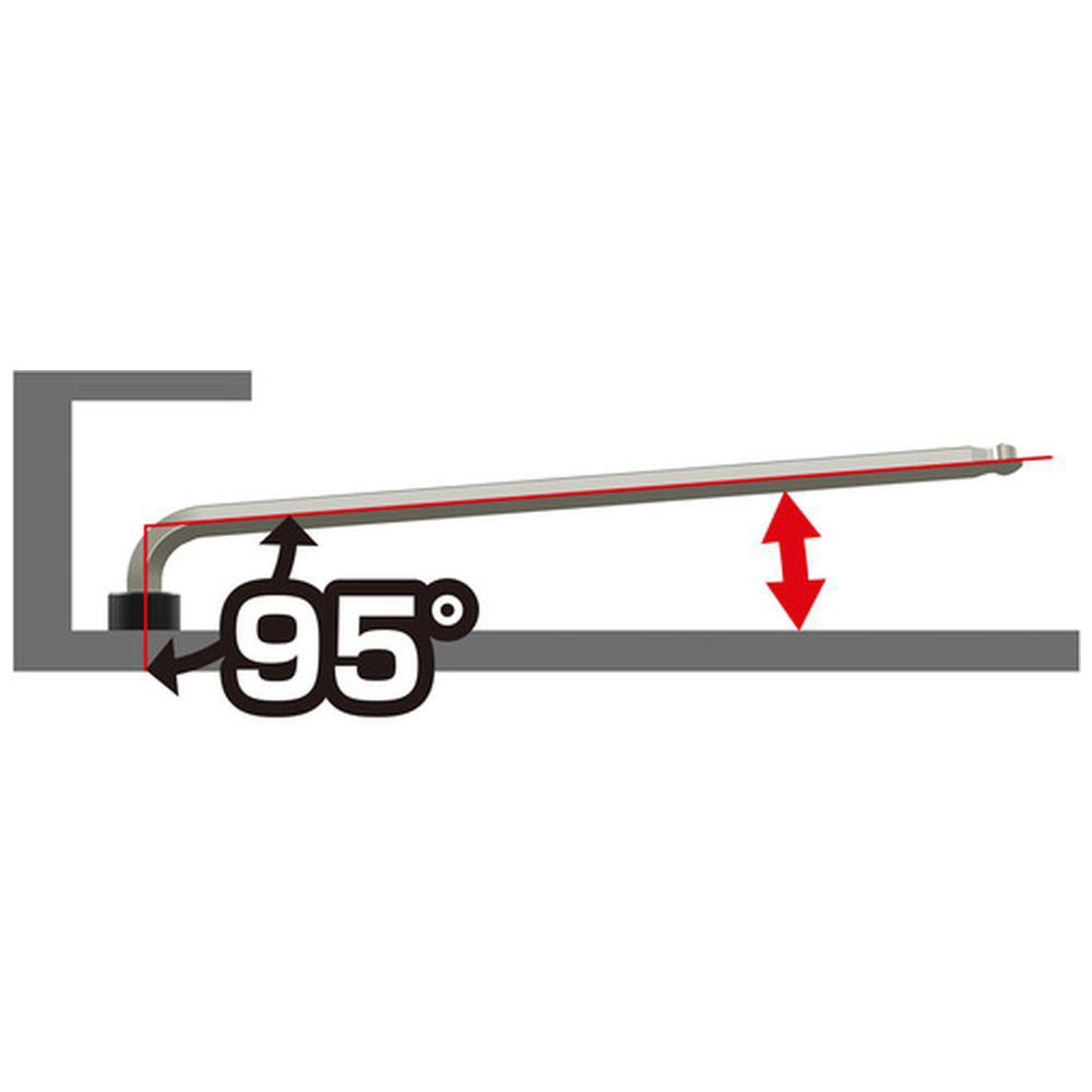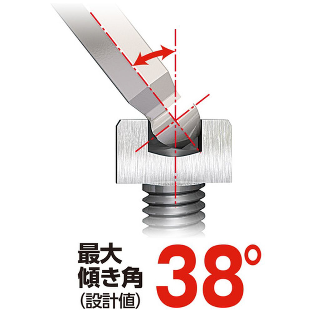 ■レンチを傾けると駆動する位置が六角穴の入り口付近に移動するため、首部が太くても傾き角度が最大38°得られます。