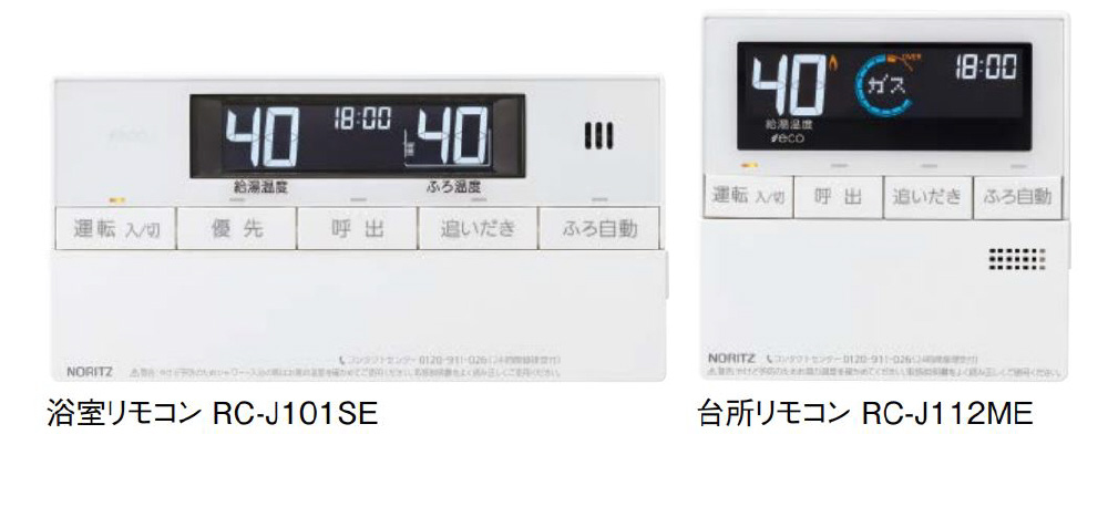 ガス給湯器リモコン(浴室・台所リモコンセット)