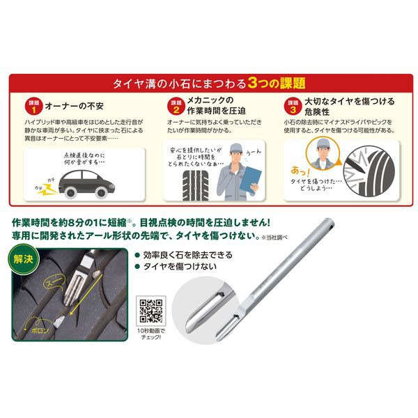 ●専用に開発されたアール形状の先端で、タイヤを傷つけない
