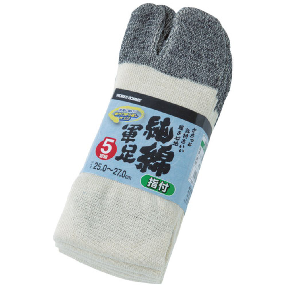 ユニワールド WORKS HOMME 純綿軍足 指付 5足組 952