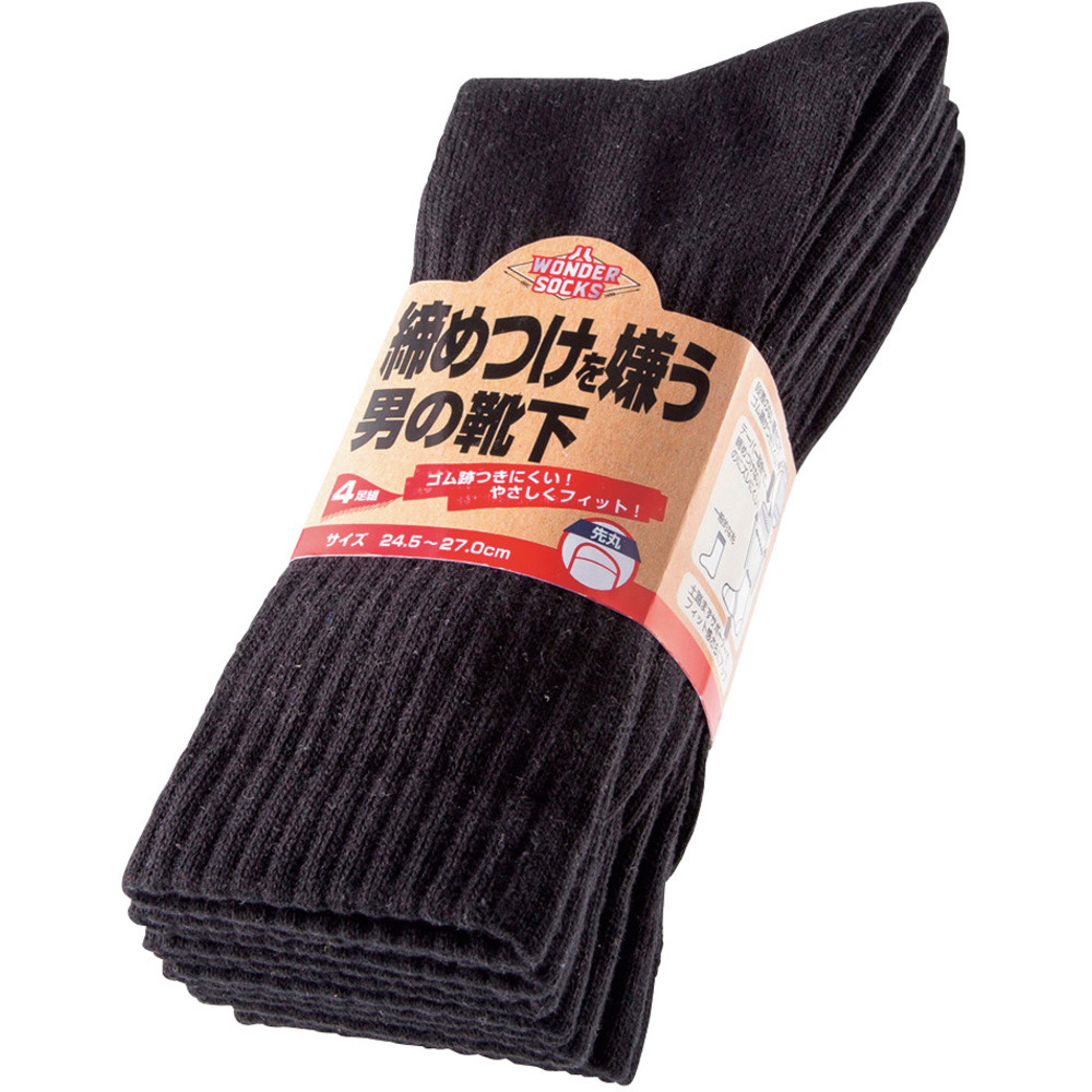 ユニワールド 締めつけを嫌う男の靴下 先丸 4足組 ブラック WS-9101