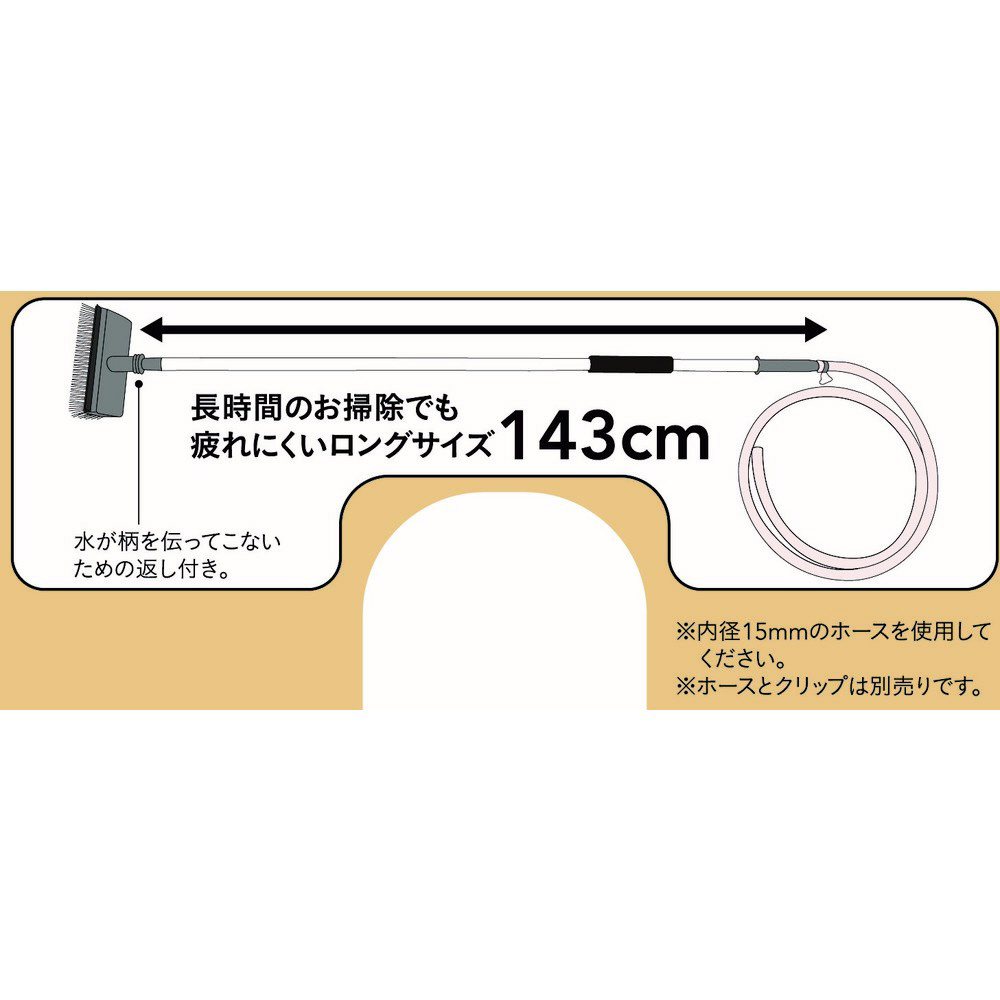 ■通水タイプなので、ホースに直接繋いで、水を流しながら掃除ができます。