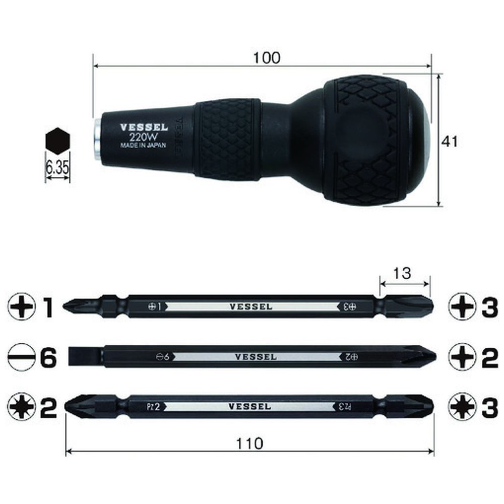 ベッセル ボールグリップ 差替ドライバーセット 220W−3 220W-3