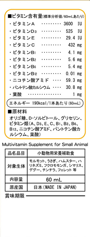 リキッドエイド マルチビタミン 小動物 60ml