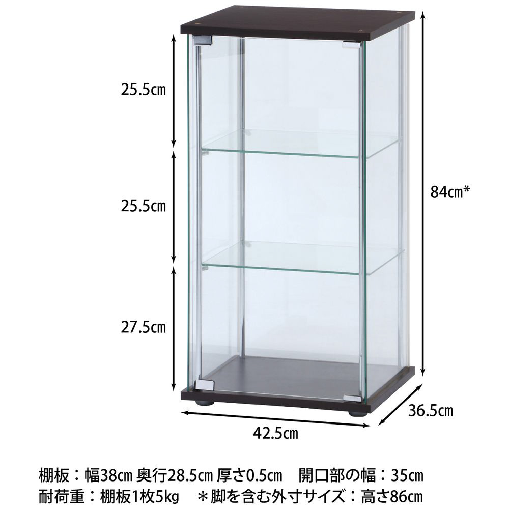 ガラスコレクションケース 3段 高さ90cm ブラウン 96049