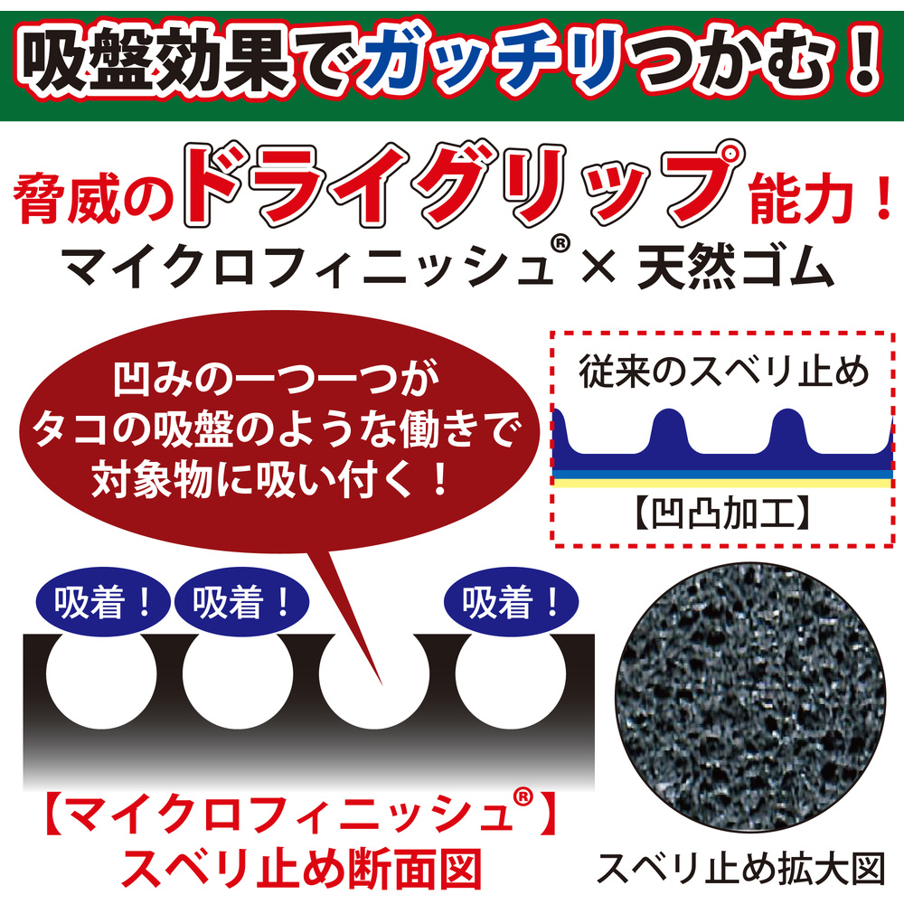 ■特殊すべり止め(マイクロフィニッシュ[[R上]])加工で、ドライ・ウエットでもグリップ力を発揮します。
