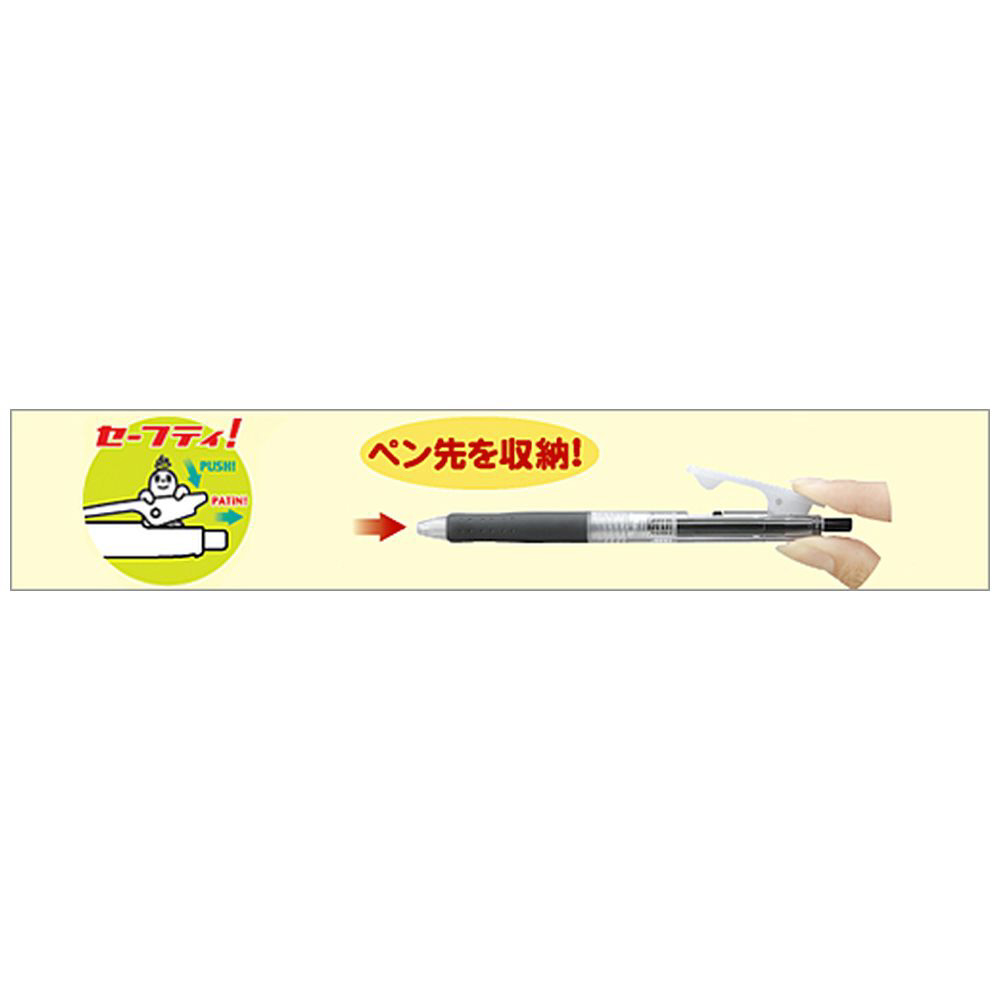 衣服やかばんを汚さないセーフティ機能を搭載。「挟む」動作でペン先が収納されるから、どんな所に挟んでも安心です。