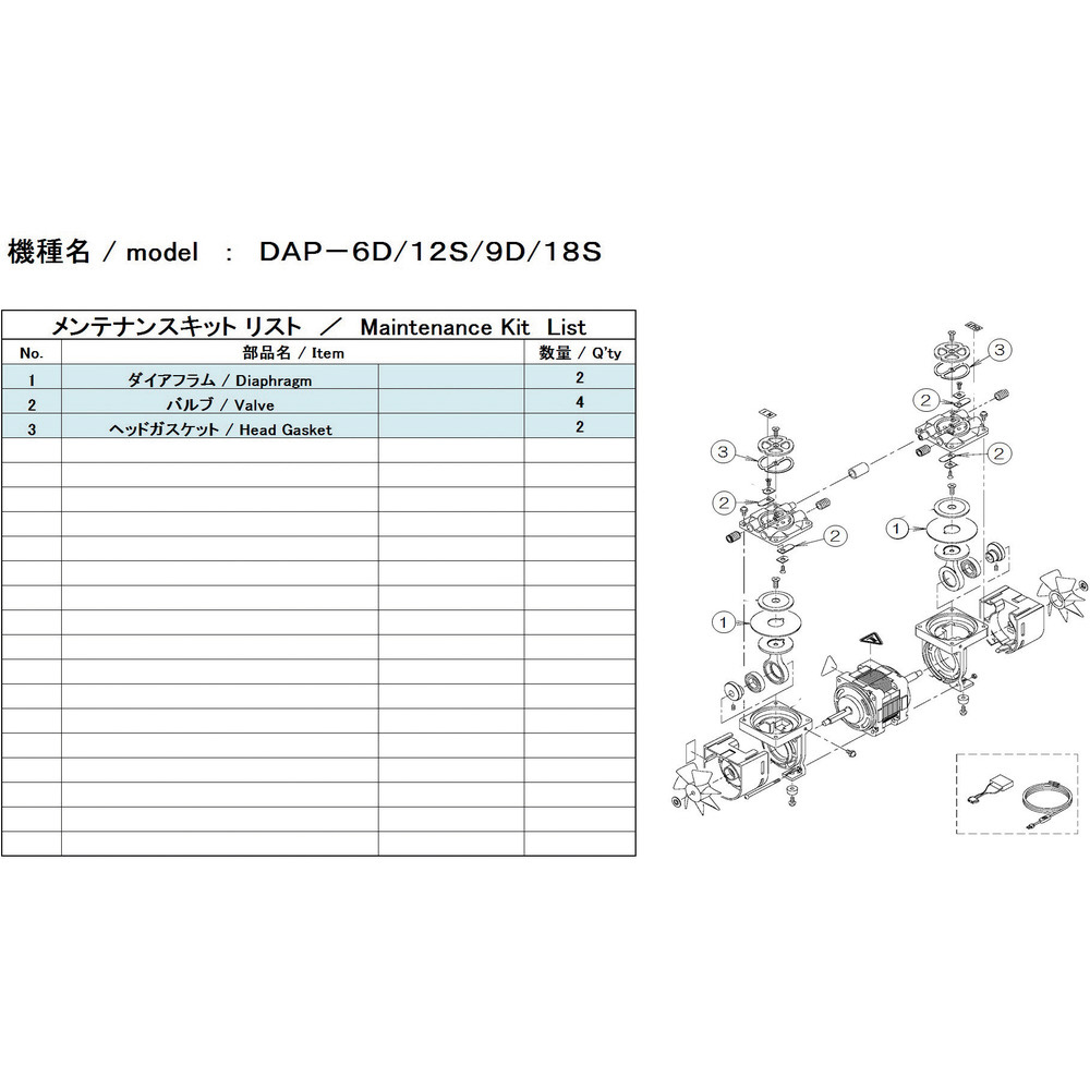 セット内容 ●ダイアフラム×2、バルブ×4、ヘッドガスケット×2