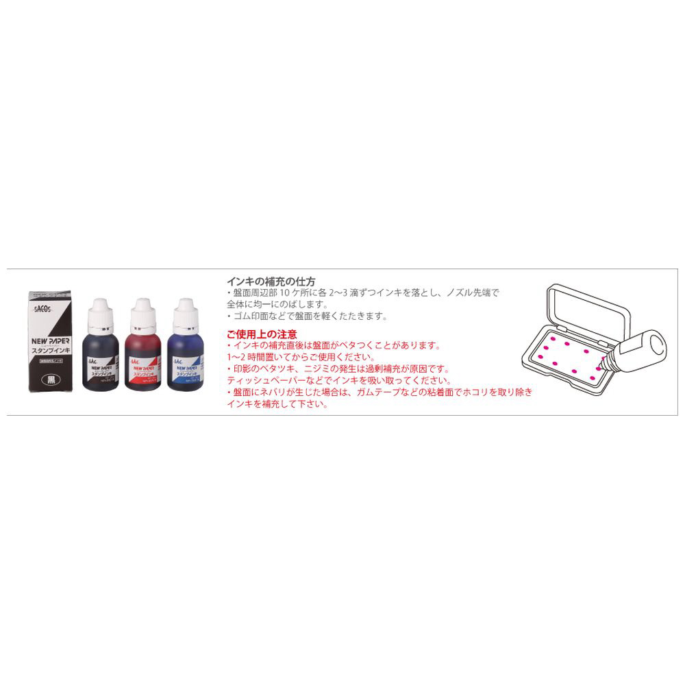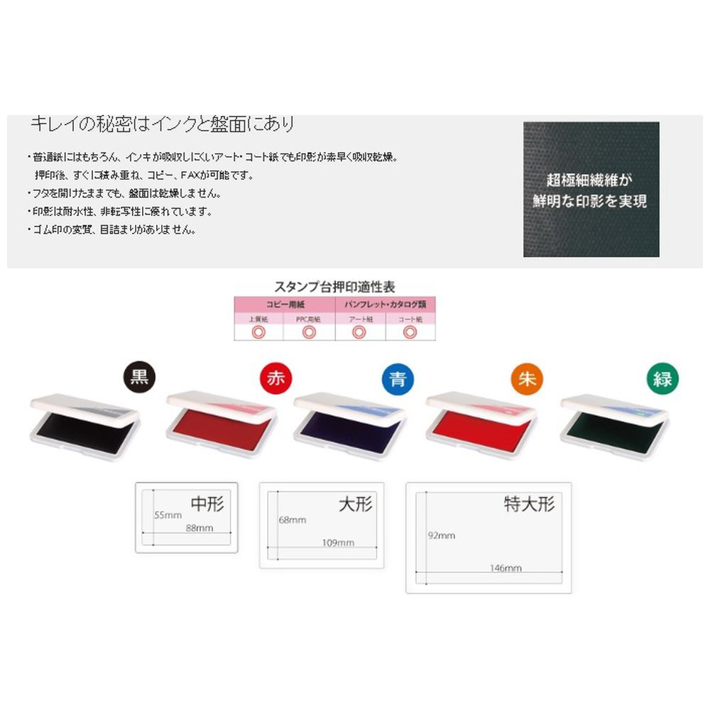 アート・コート紙に押印できる中形スタンプ台。 普通紙にも乾燥が早く連続押印可能。 油性染料系インキ採用。