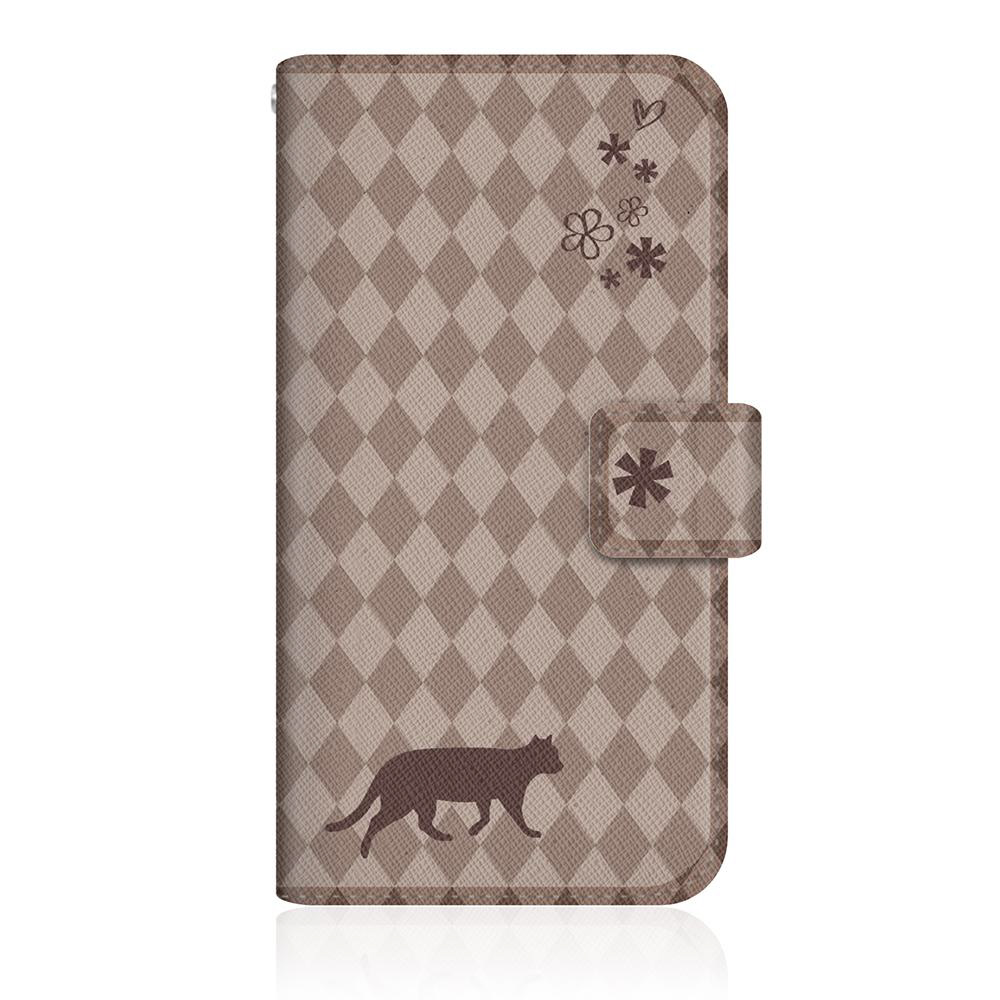 NYAGO L-01J スリム手帳型ケース NYAGO ノート フレンチ フラワー ダイアリー キャット シルエット ダイヤ柄 & てくてくお散歩だにゃん チョコレート L-01J-BNG2S2463-78